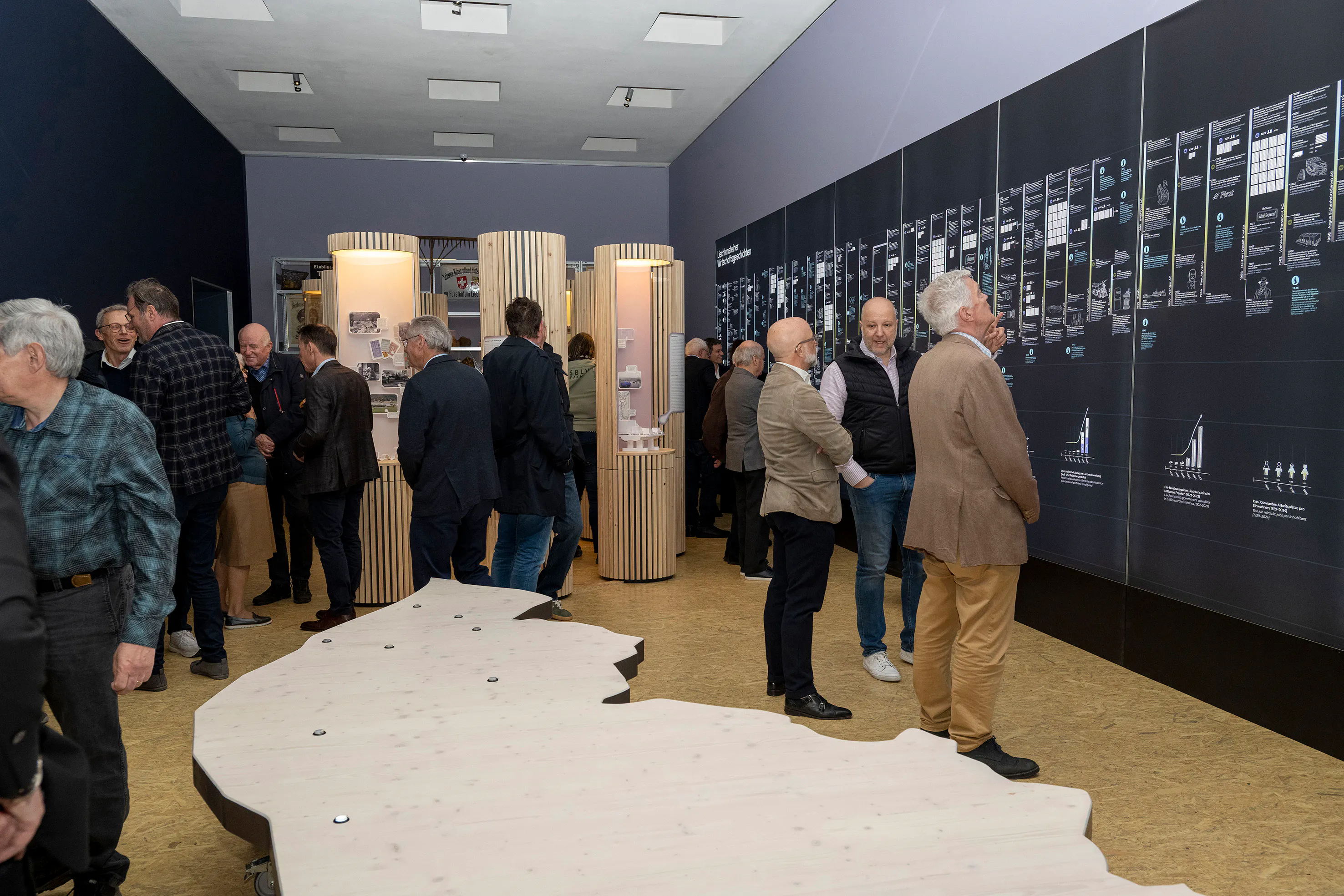 Die Sonderausstellung zeichnet diese aussergewöhnliche Entwicklung nach. Sie beleuchtet Prozesse des wirtschaftlichen Umbruchs und stellt jene Menschen ins Zentrum, die diesen Strukturwandel erlebt und mitgestaltet haben – im Spannungsfeld von Aufbruch, Entscheidung und Verantwortung. Ihre filmisch dokumentierten Erinnerungen eröffnen einen persönlichen Zugang zur Wirtschaftsgeschichte und zeigen, wie ökonomische Entwicklung aus Lebensrealitäten, gemeinsamem Gestalten und einer Portion Glück entsteht.