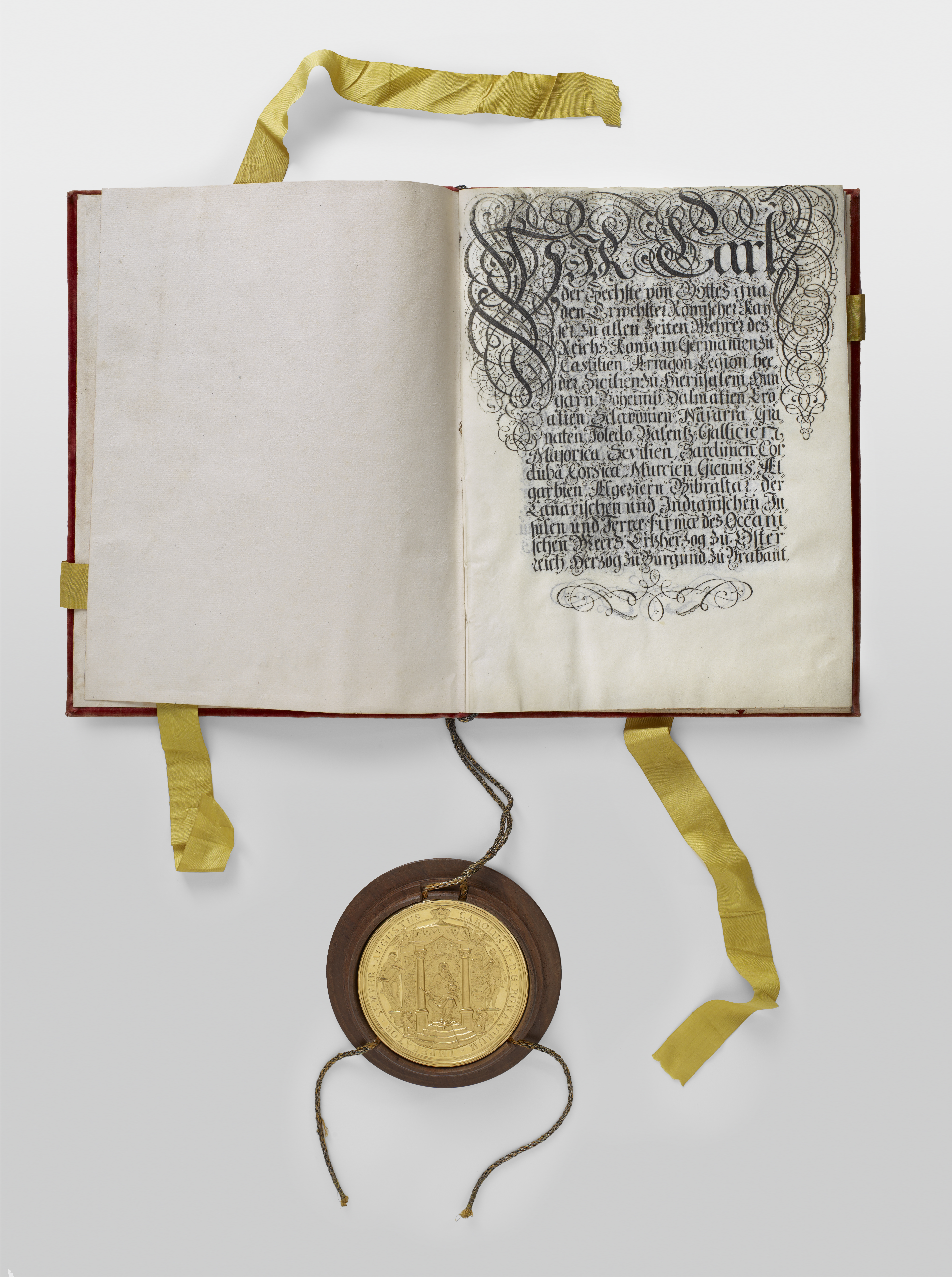 Kaiser Karl VI. vereinigt die Grafschaft Vaduz und die Herrschaft Schellenberg und erhebt sie zu einem Reichsfürstentum mit dem Namen Liechtenstein, Kaiser Karl VI. (HRR) (1685–1740), 1719. LIECHTENSTEIN. The Princely Collections, Vaduz–Vienna, Inv. Nr. UR 1719.01.23.1, Foto: © LIECHTENSTEIN, The Princely Collections, Vaduz – Vienna.