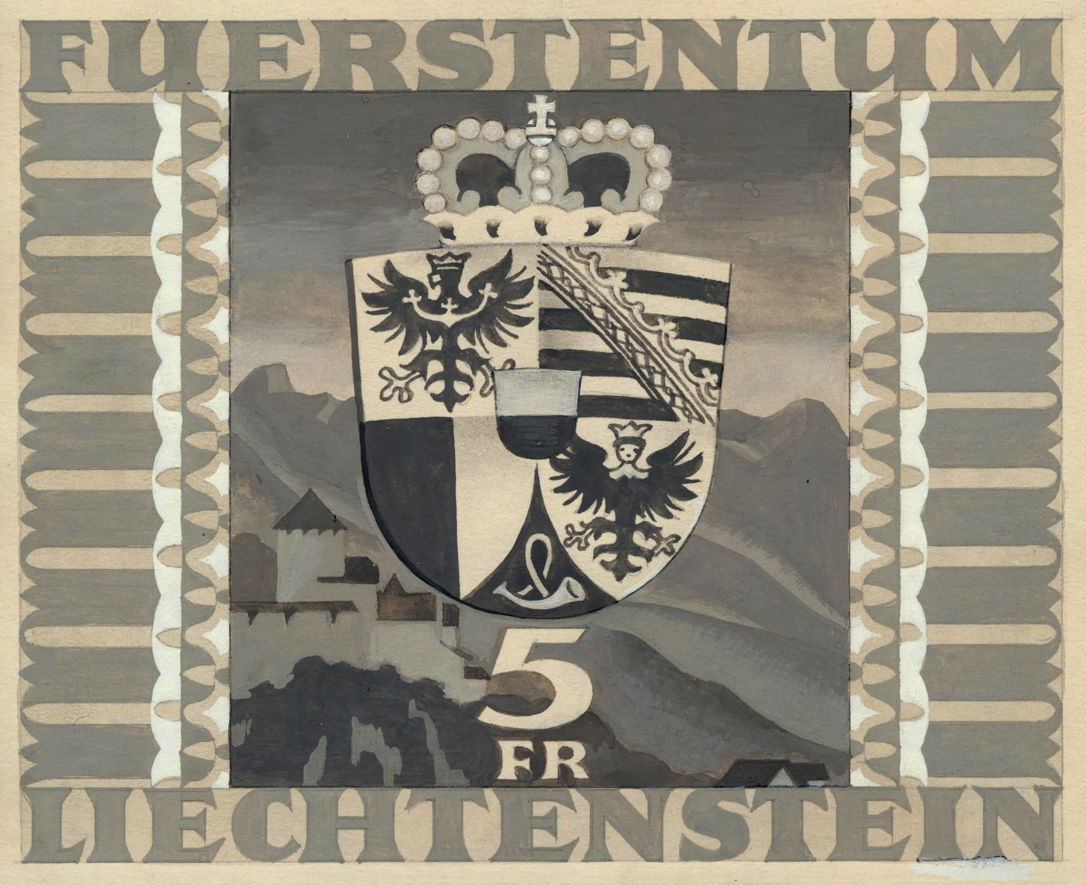 1945. Aquarell, Bleistift, Deckweiss. Originalentwurf. © Liechtensteinisches LandesMuseum (Foto: Sven Beham)