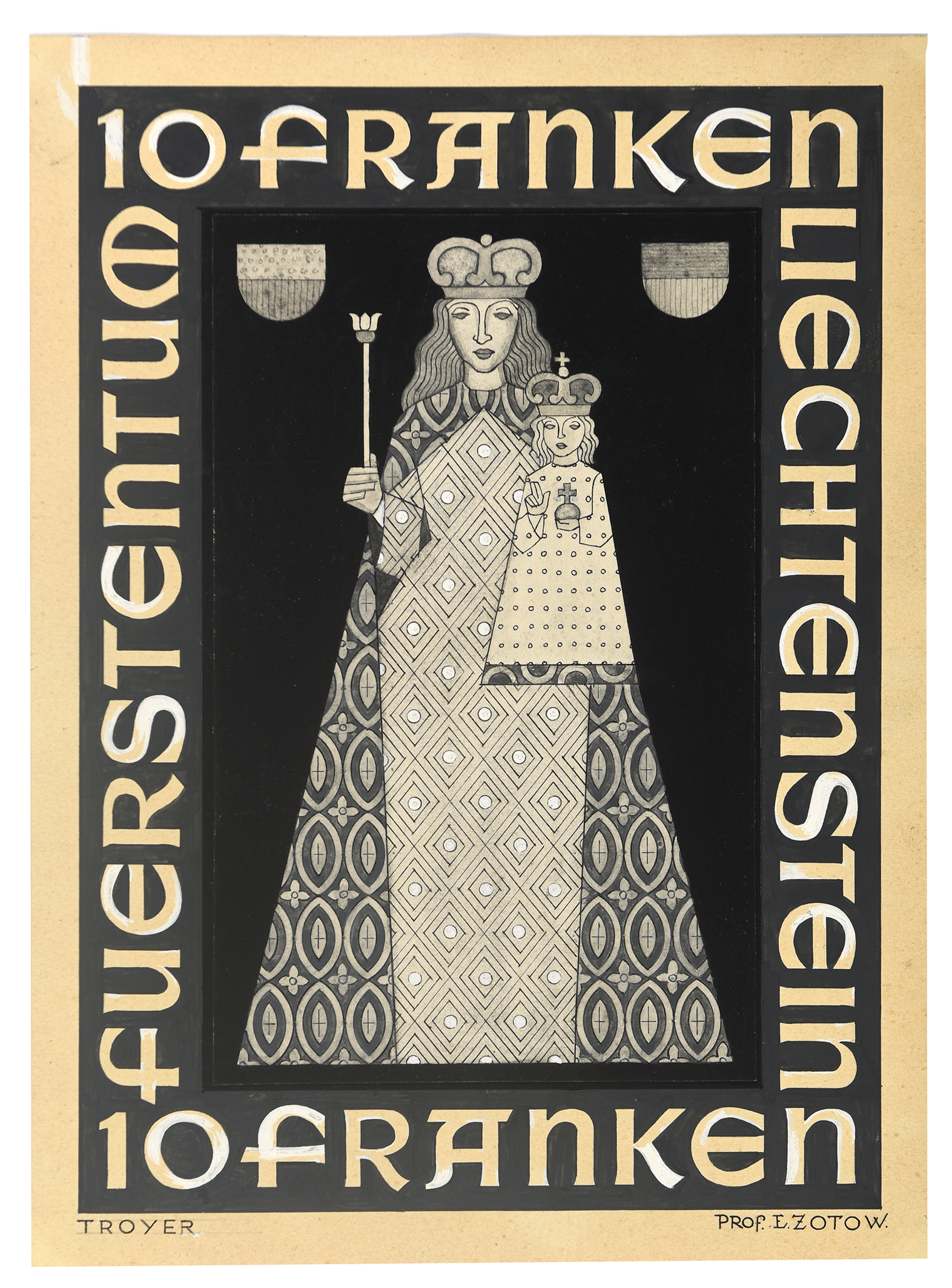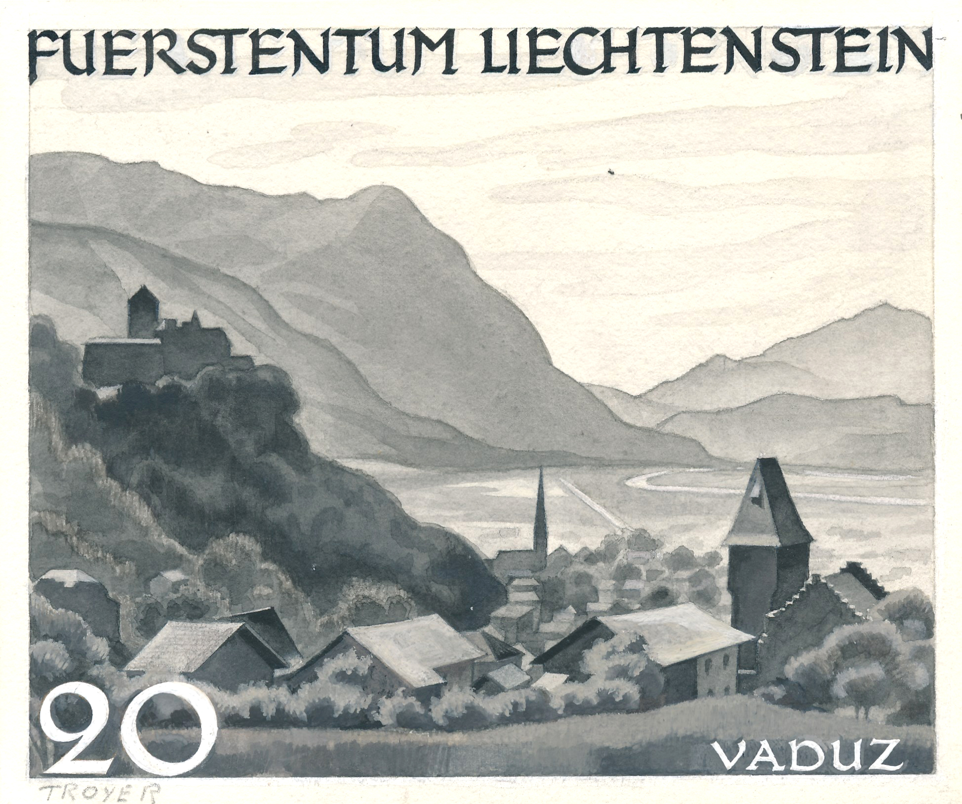 Der Bildhauer, Grafiker und Maler Johannes Troyer (1902–1969) aus Österreich besucht die Kunstgewerbeschule Innsbruck und absolviert Studien an Kunsthochschulen in München und Wien. Nach dem Anschluss Österreichs an Nazi-Deutschland 1938 emigriert er mit seiner jüdisch stämmigen Frau sowie seiner Mutter nach Liechtenstein. Bis zu ihrer Auswanderung in die USA 1949 leben sie in Vaduz. Troyer prägt in dieser Zeit die liechtensteinische Philatelie massgeblich, gestaltet er doch mehr als die Hälfte der zwischen 1939 und 1949 insgesamt ausgegebenen 113 Briefmarken. Die Sammlung des Liechtensteinischen LandesMuseums enthält die Originalentwürfe zu diesen Briefmarken so-wie von Troyer geschaffene Skizzen und Vorentwürfe. Mit dieser Sonderausstellung im Liechtensteinischen PostMuseum erinnert das Liechtensteinische LandesMuseum an das Briefmarkenschaffen des vor 120 Jahren geborenen Johannes Troyer, der 1962 aus den USA nach Österreich zurückkehrt und 1969 in Innsbruck stirbt.