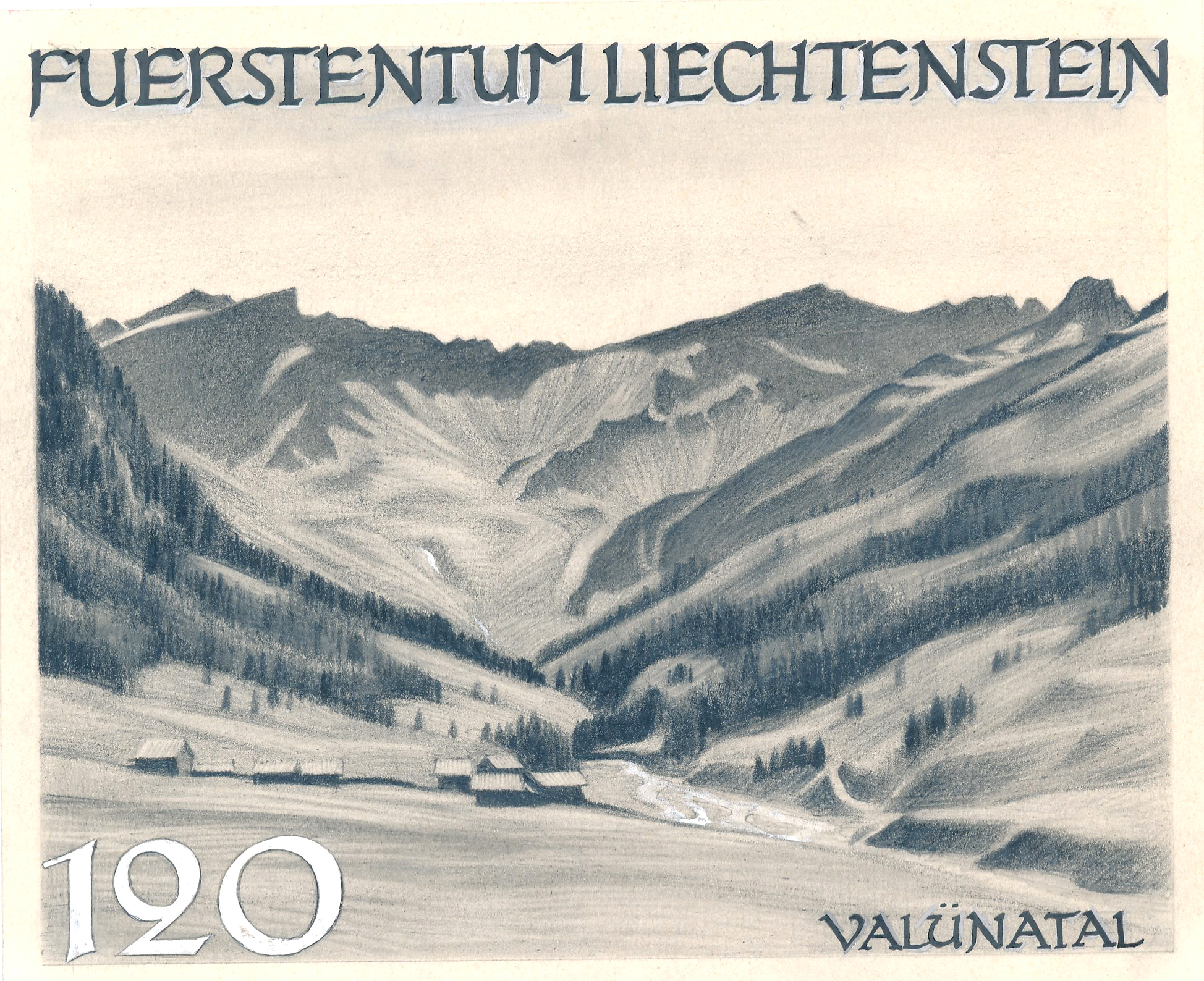 1946. Bleistift, Deckweiss. Originalentwurf. © Liechtensteinisches LandesMuseum (Foto: Sven Beham)