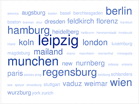 Tagcloud: Wohnorte von Rheinbergers Korrespondenzpartner